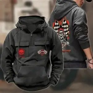 Harley Davidson New Personalized Multi-Pockets Zip Hoodie CANACRL000068